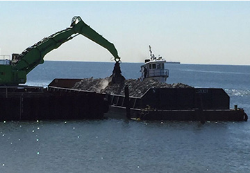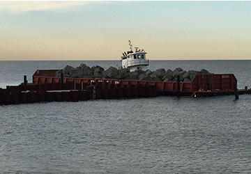 - Delivery (via barge) and unloading of approximately 150,000 tons of various types of stone (bedding stone to 12 ton armor)