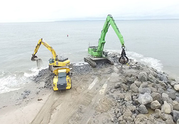 H&L’s management team was innovative during the planning and progressing of the project, employing new jetty/T-Groin construction methods; new stone placement methods; the construction and utilization of a temporary pier for stone deliveries; and consistently sought to improve efficiency throughout the course of the project.