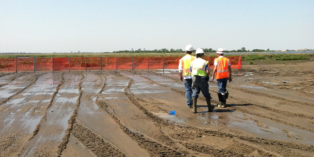 Earthwork/Site Grading: Work under this section consisted of the re-handling and the re-grading of 350,000 CY of dredge material from NY harbor. The sand was spread with our equipment to create the different areas and channels to create a new 70-acre marsh.